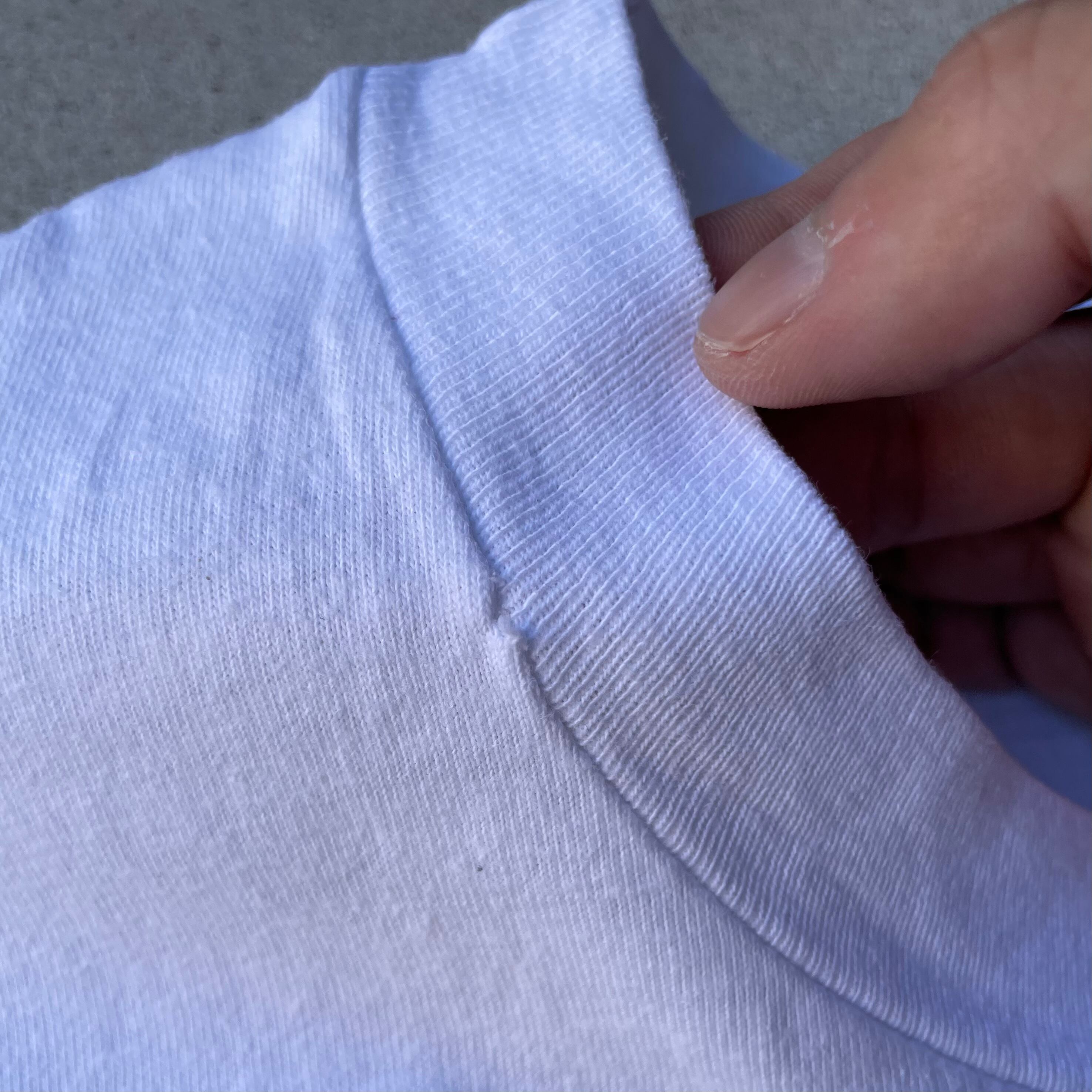 状態:首リブに縫製ズレ、左脇にピンホール