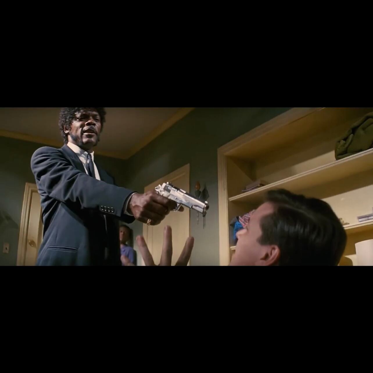 殺し屋のジュールスが銃を撃つ前のシルエット